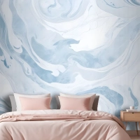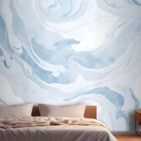 Mavi & Beyaz Mermerize Yatak Odası Duvar Kağıdı