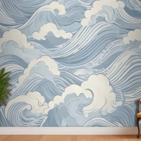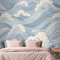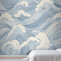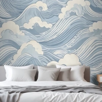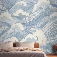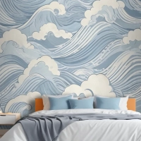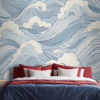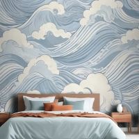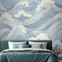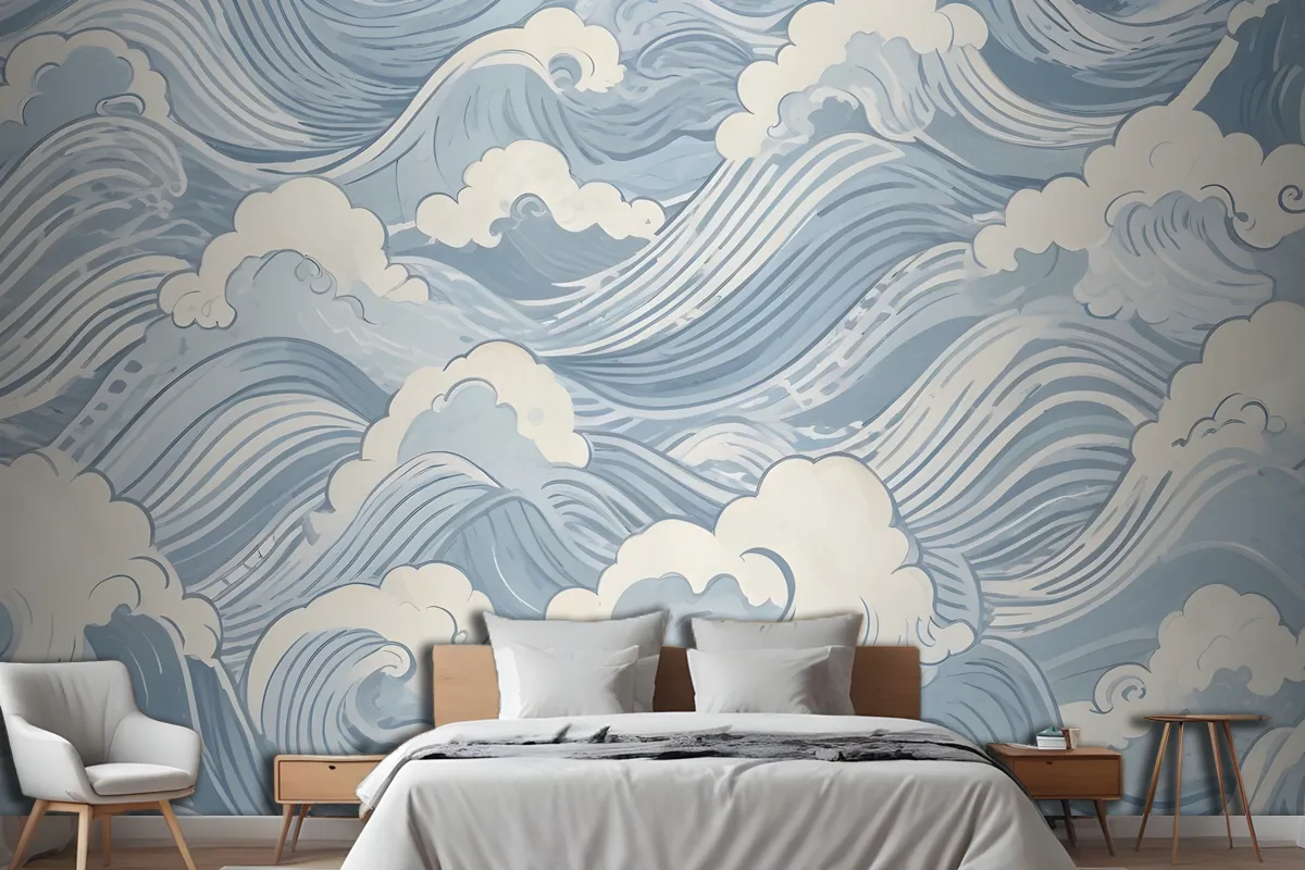 Mavi Dalgalar Yatak Odası Duvar Kağıdı