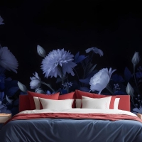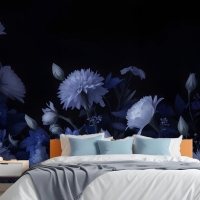 Mavi Delft Koyu Çiçek Sanatı Resim Yatak Odası Duvar Kağıdı