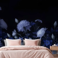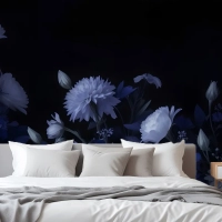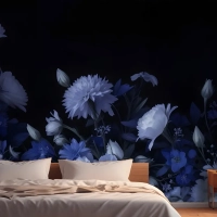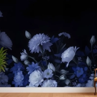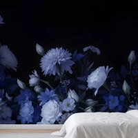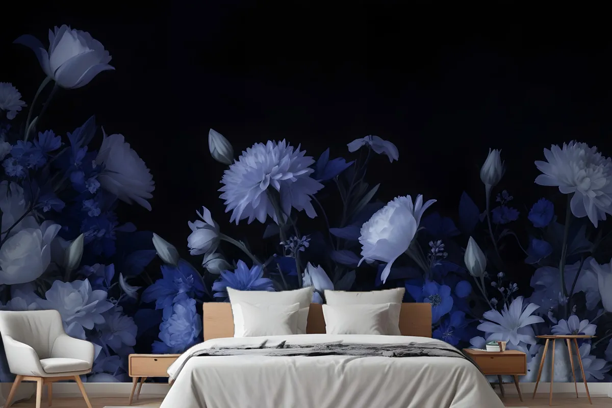 Mavi Delft Koyu Çiçek Sanatı Resim Yatak Odası Duvar Kağıdı