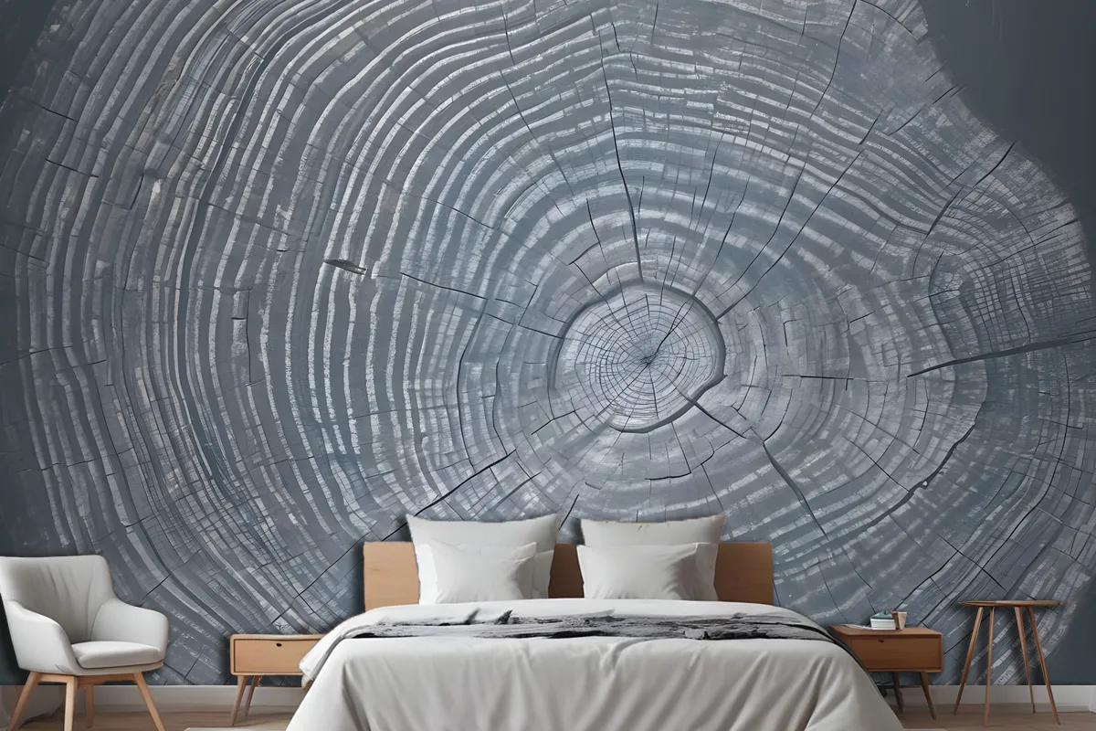 Mavi Gri Ahşap Tahıl Baskı Yatak Odası Duvar Kağıdı