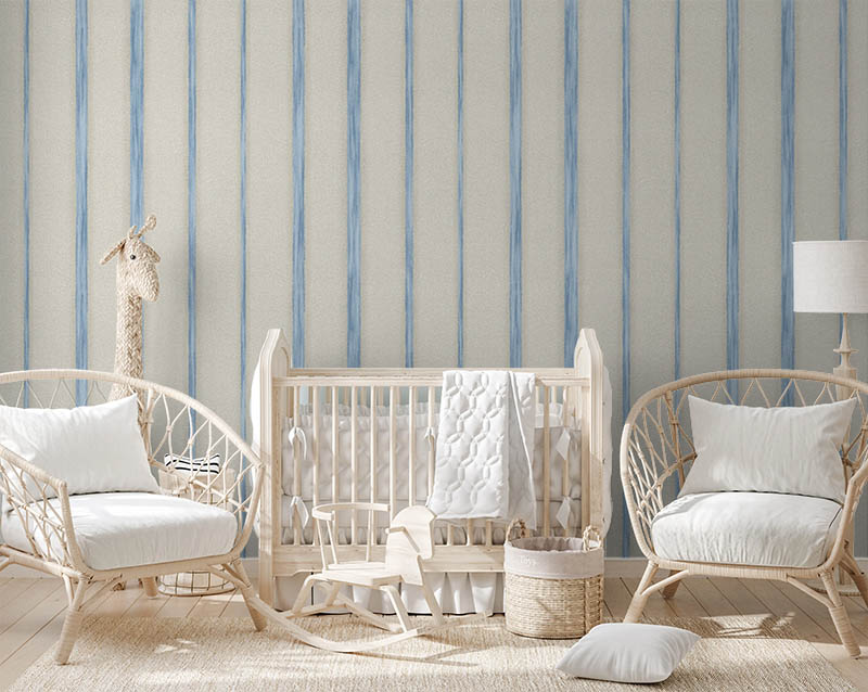 Mavi Krem Çizgili Duvar Kağıdı 53253