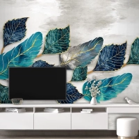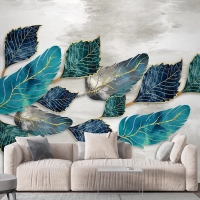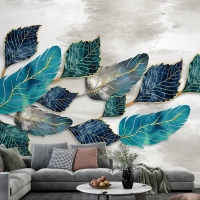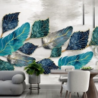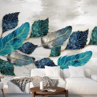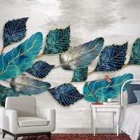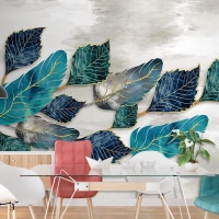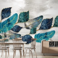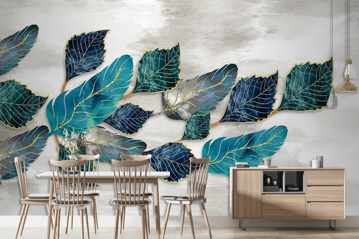 Mavi Lacivert Yapraklar Duvar Kağıdı