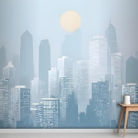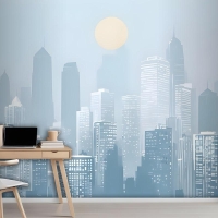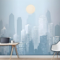 Mavi Monokrom Şehir Manzarası Ve Yumuşak Güneş Duvar Kağıdı