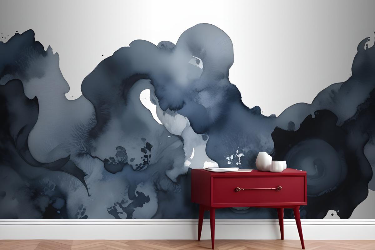 Mavi Moody Soyut Suluboya Resim Antre Hol Koridor Duvar Kağıdı