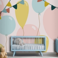 Mavi Pembe Ve Sarı Balonlu Şenlikli Arka Plan Çocuk Odası Duvar Kağıdı