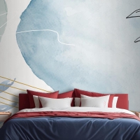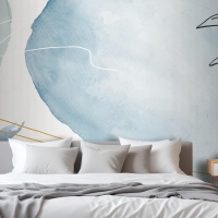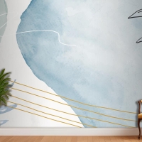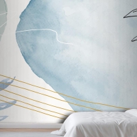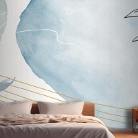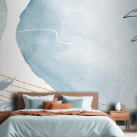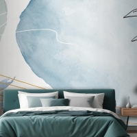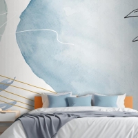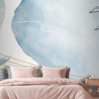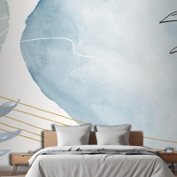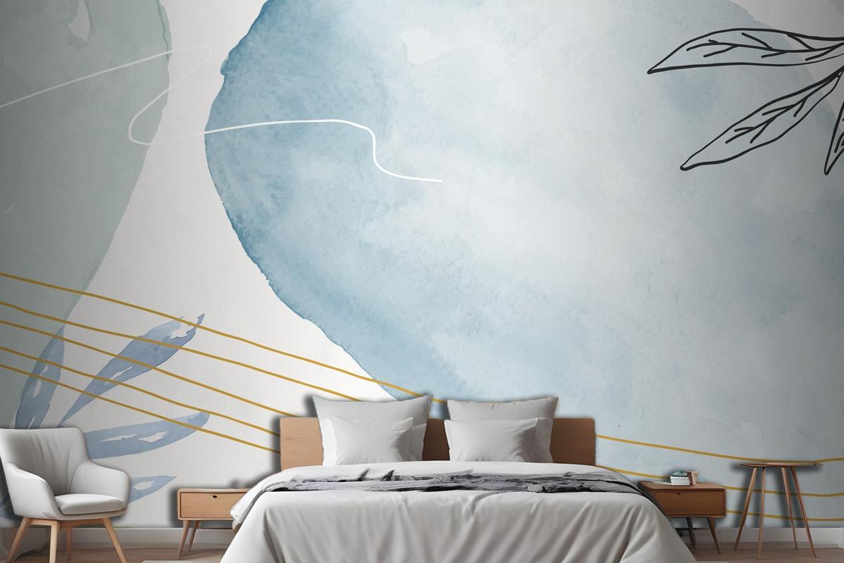 Mavi Suluboya Çiçek Arka Plan Yatak Odası Duvar Kağıdı