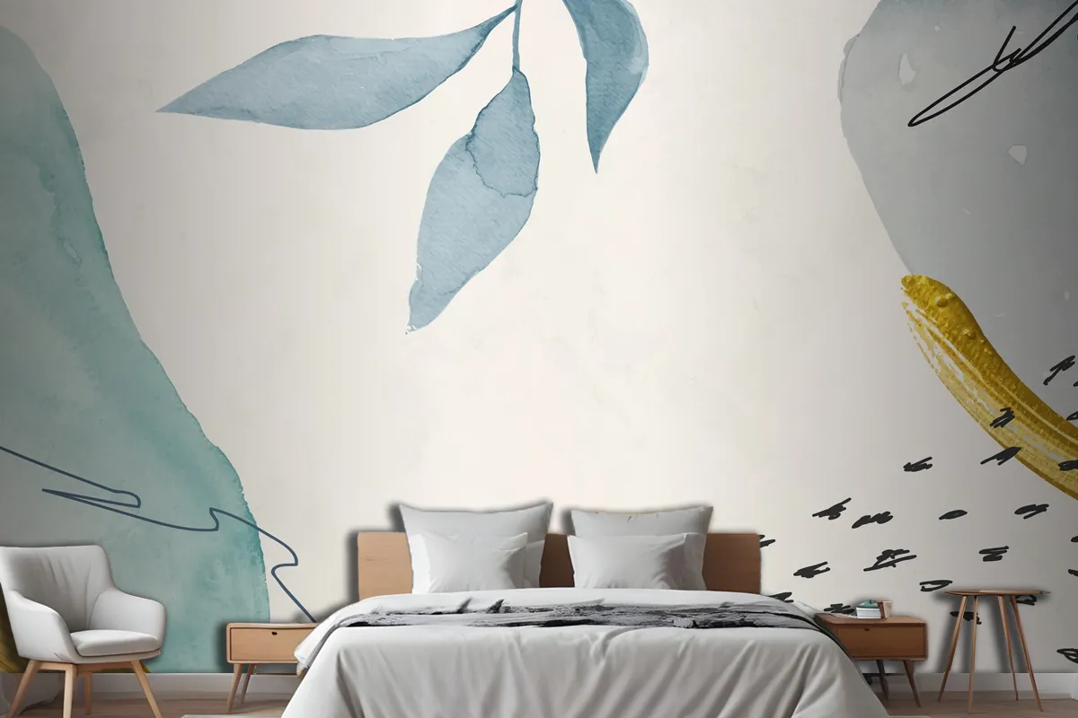 Mavi Suluboya Çiçek Arka Plan Yatak Odası Duvar Kağıdı
