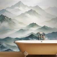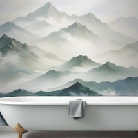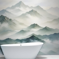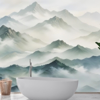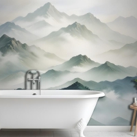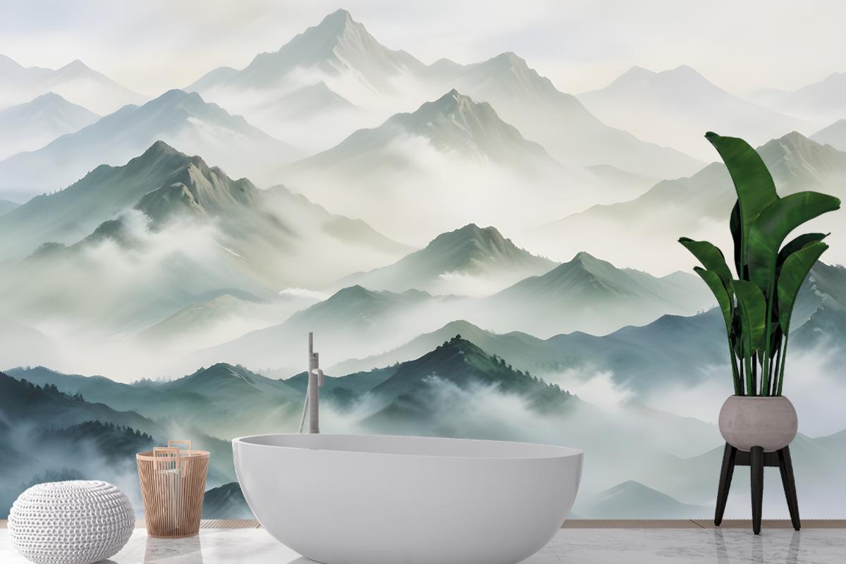 Mavi Ve Yeşil Dağ Manzarası Banyo Duvar Kağıdı