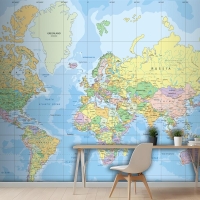 Mercator Projeksiyon Duvar Kağıdı Duvarındaki Siyasi Dünya Haritası