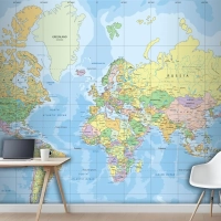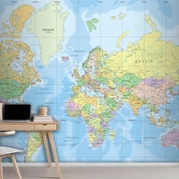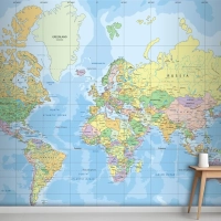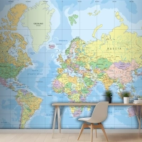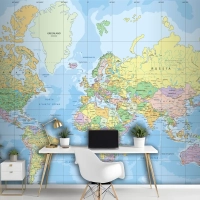 Mercator Projeksiyon Duvar Kağıdı Duvarındaki Siyasi Dünya Haritası