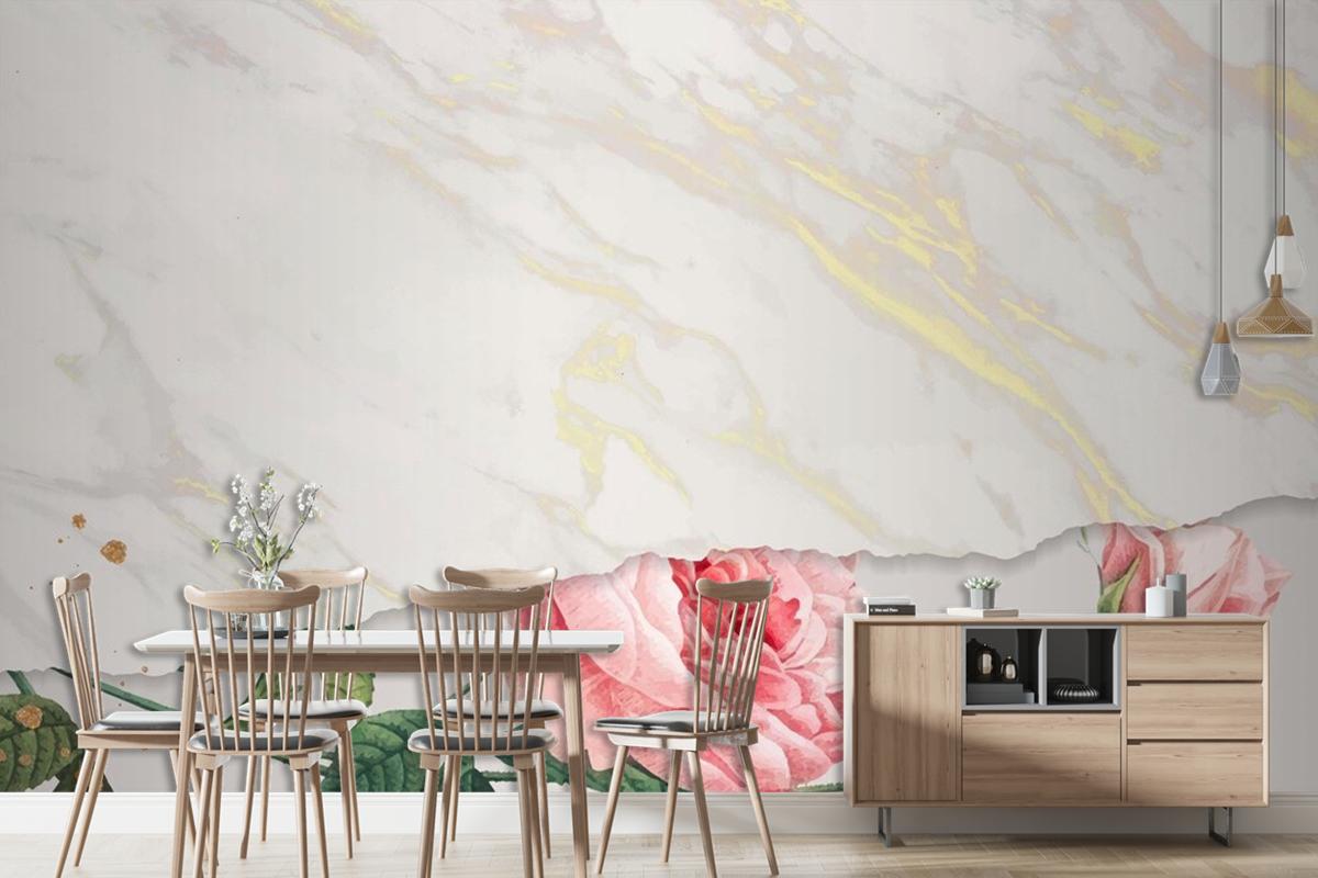 Mermer Tasarım Ve Gül Vintage Duvar Kağıdı