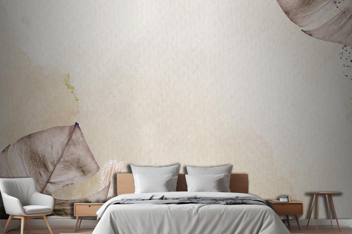 Metalik Monstera Yaprağı Arka Plan Yatak Odası Duvar Kağıdı