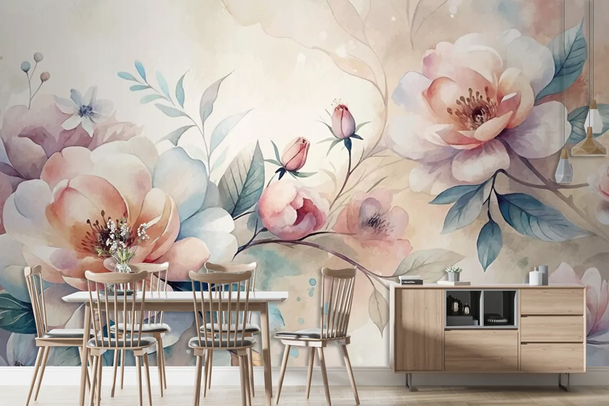 Minimalist Çiçek Açan Çiçek Suluboya Arka Plan Güzel Dağınık Duvar Kağıdı