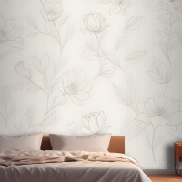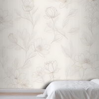Minimalist Krem Kiraz Çiçeği Yatak Odası Duvar Kağıdı