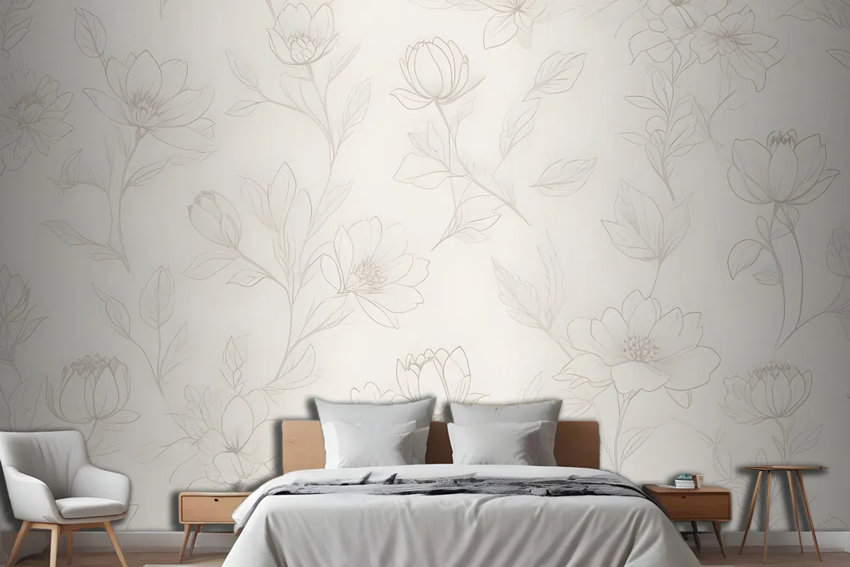 Minimalist Krem Kiraz Çiçeği Yatak Odası Duvar Kağıdı