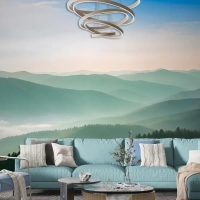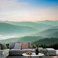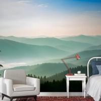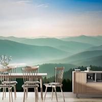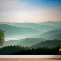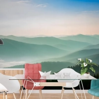 Misty Mountain Yeşil Orman Manzaralı Duvar Kağıdı