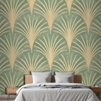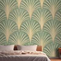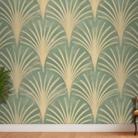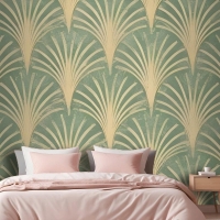 Modern Eau De Nil Art Deco Altın Çizgili Yatak Odası Duvar Kağıdı