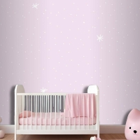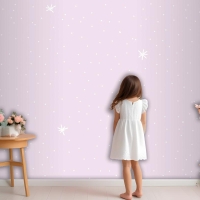 Mor Arka Planlı Minimal Yıldız Desenli Çocuk Odası Duvar Kağıdı