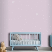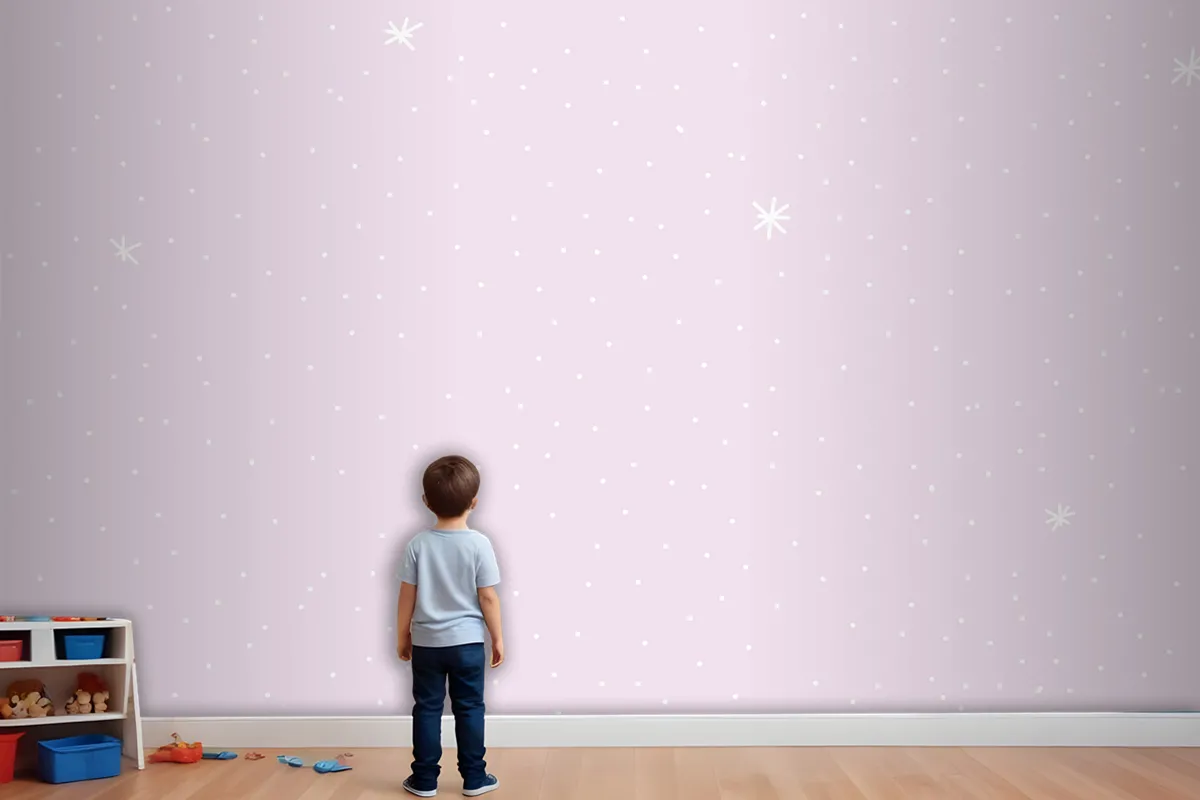 Mor Arka Planlı Minimal Yıldız Desenli Çocuk Odası Duvar Kağıdı