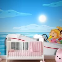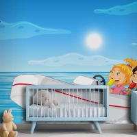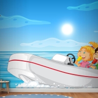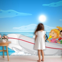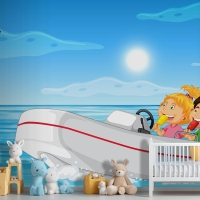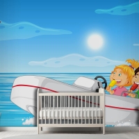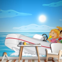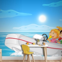Motorlu Teknede Çocuklu Okyanus Manzarası Çocuk Odası Duvar Kağıdı