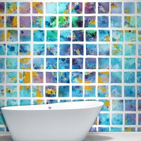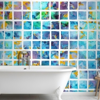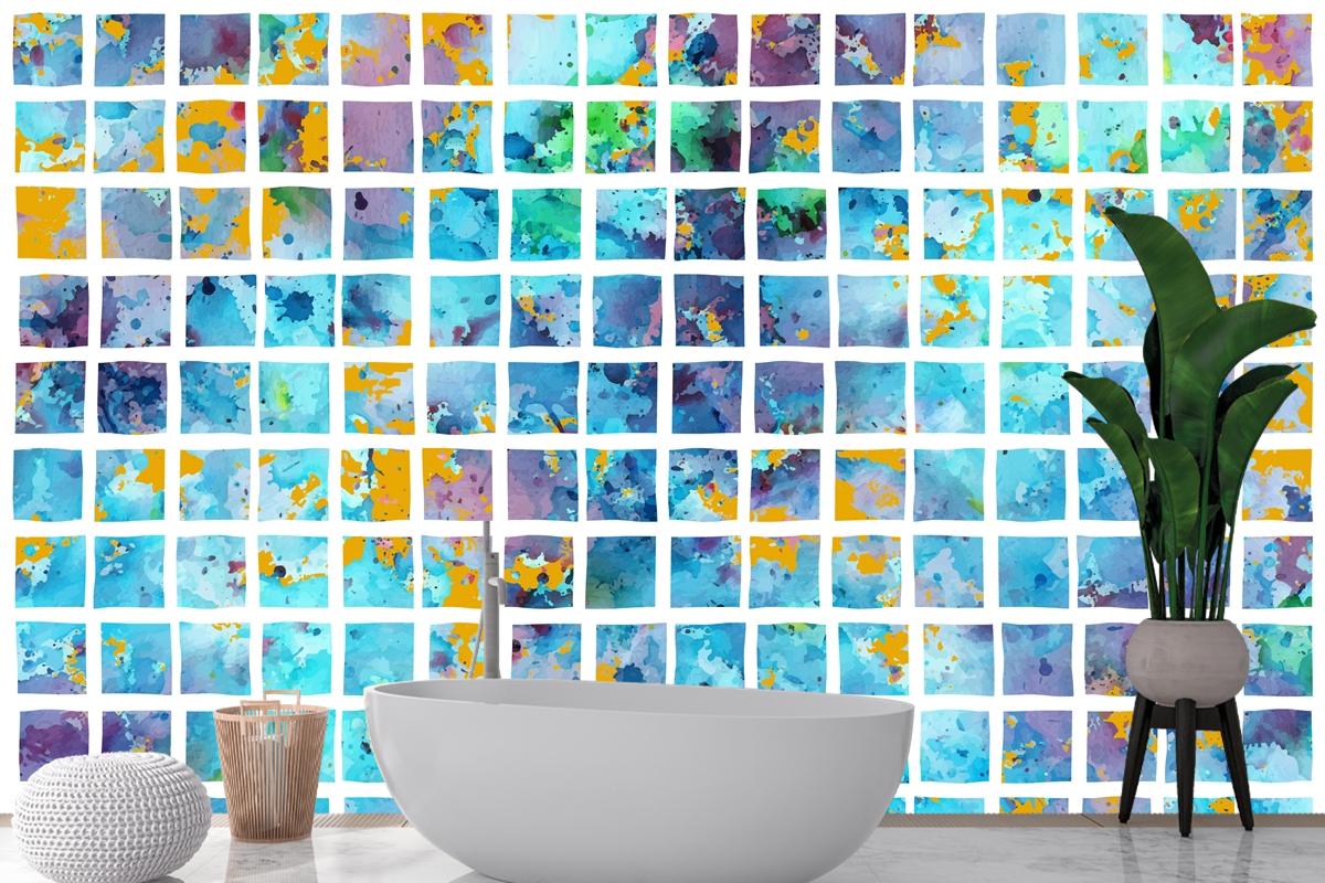 Mozaik Tarzında Suluboya Arka Plan Banyo Duvar Kağıdı