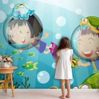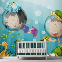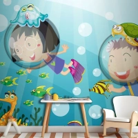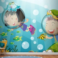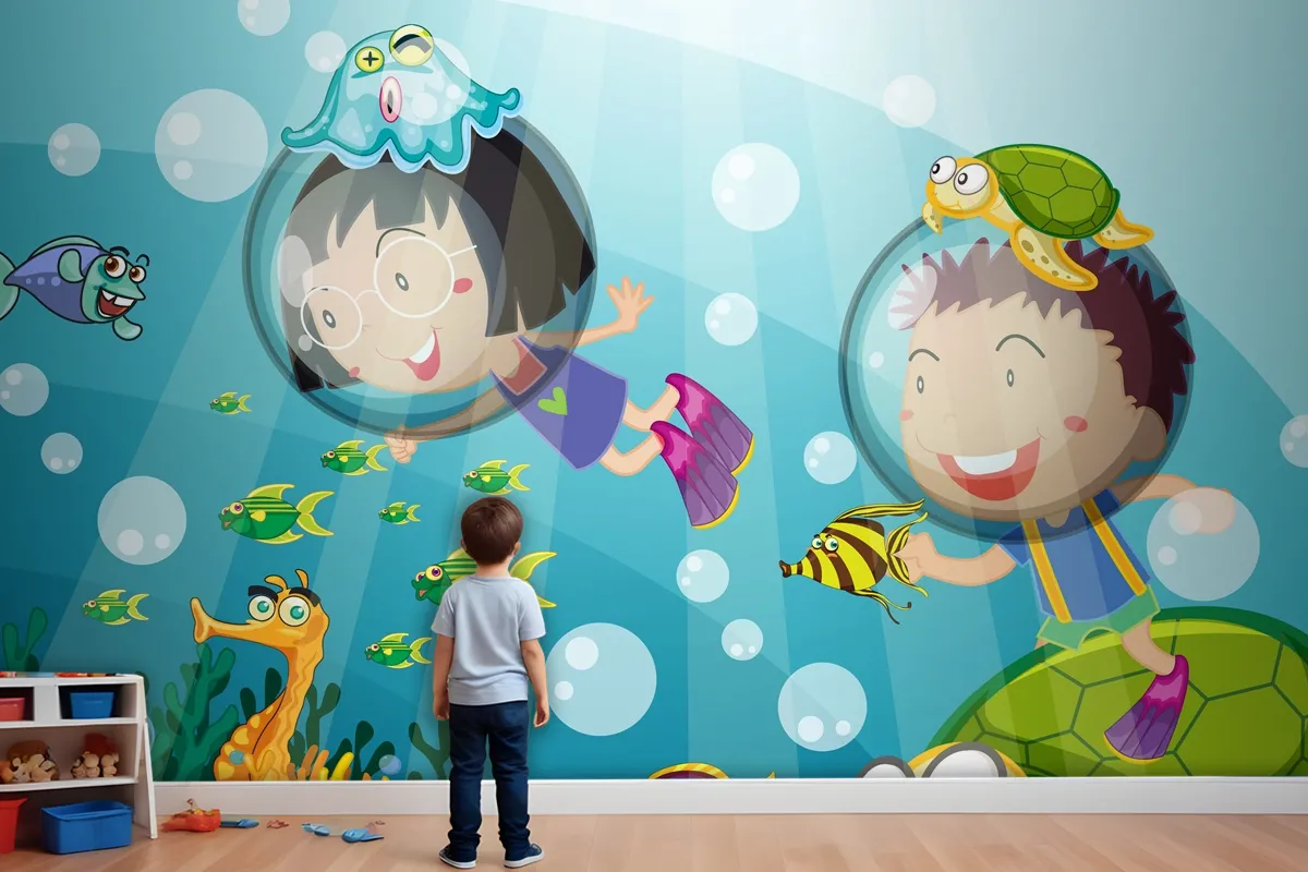 Mutlu Çocuklarla Sualtı Sahnesi Tüplü Dalış Çocuk Odası Duvar Kağıdı