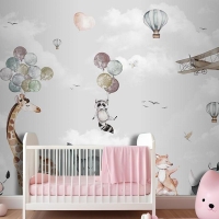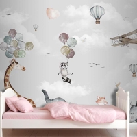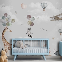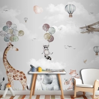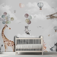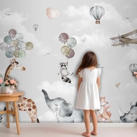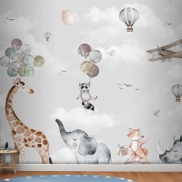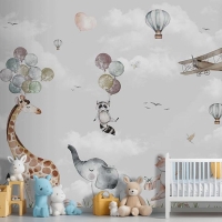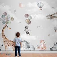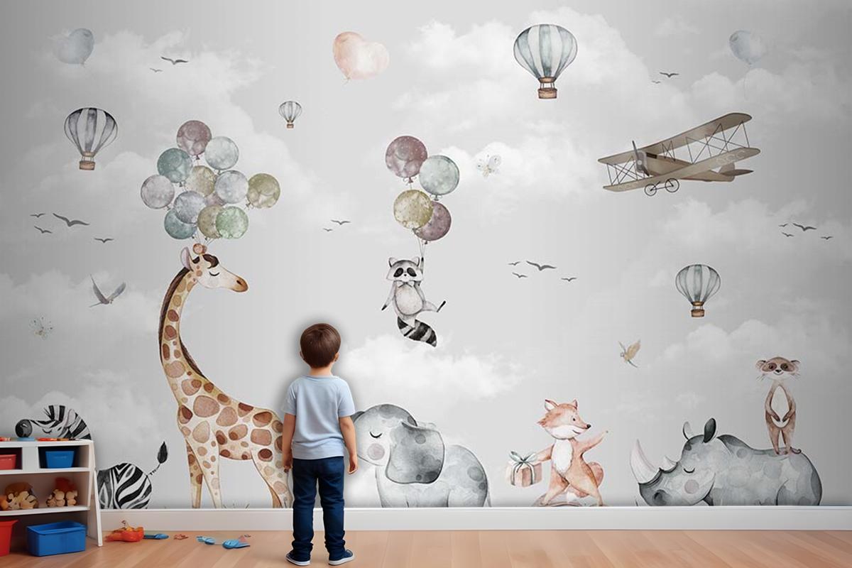 Mutlu Hayvanların Renkli Dünyası Çocuk Odası Duvar Kağıdı