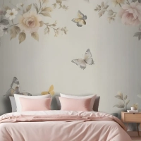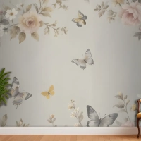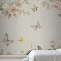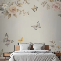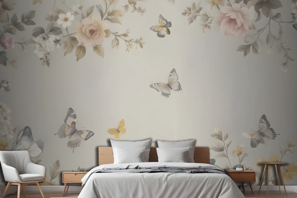 Narin Kelebekler Ile Çiçek Yatak Odası Duvar Kağıdı Deseni
