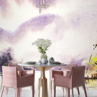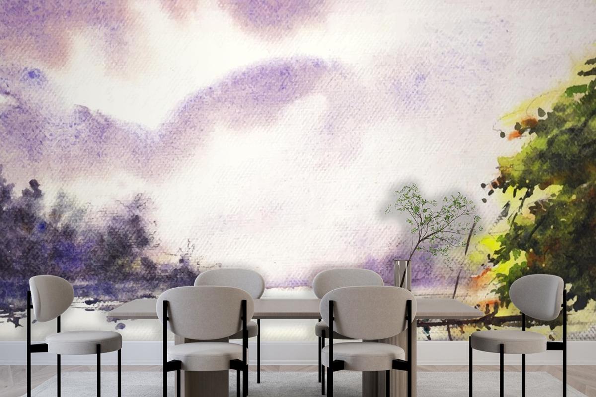 Nehir Ve Hayat El Boyası Suluboya Sanatı Yemek Odası Duvar Kağıdı