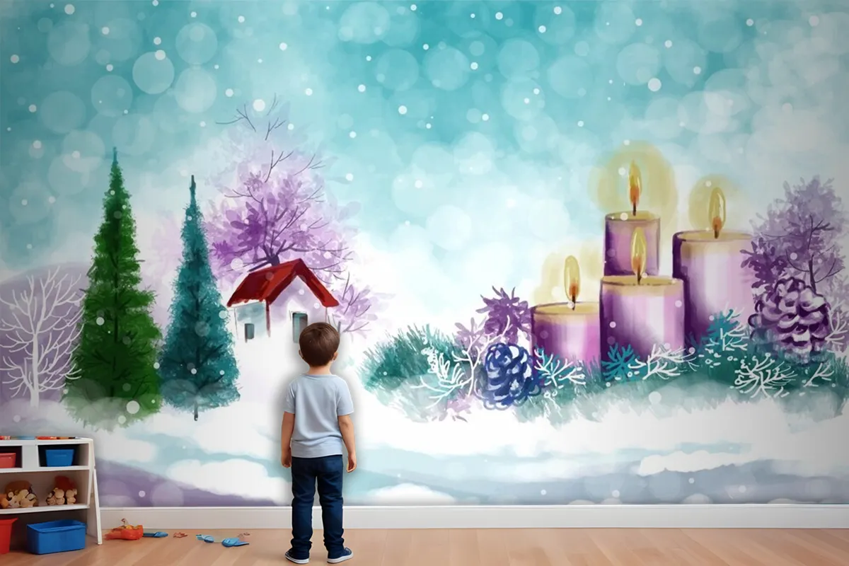 Noel Ve Mutlu Yeni Yıl Sezonu Çocuk Odası Duvar Kağıdı Için El Boyalı Suluboya Çizimi