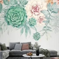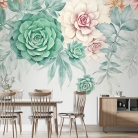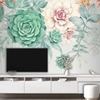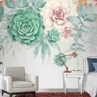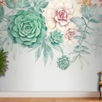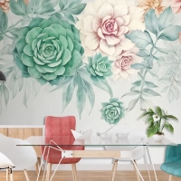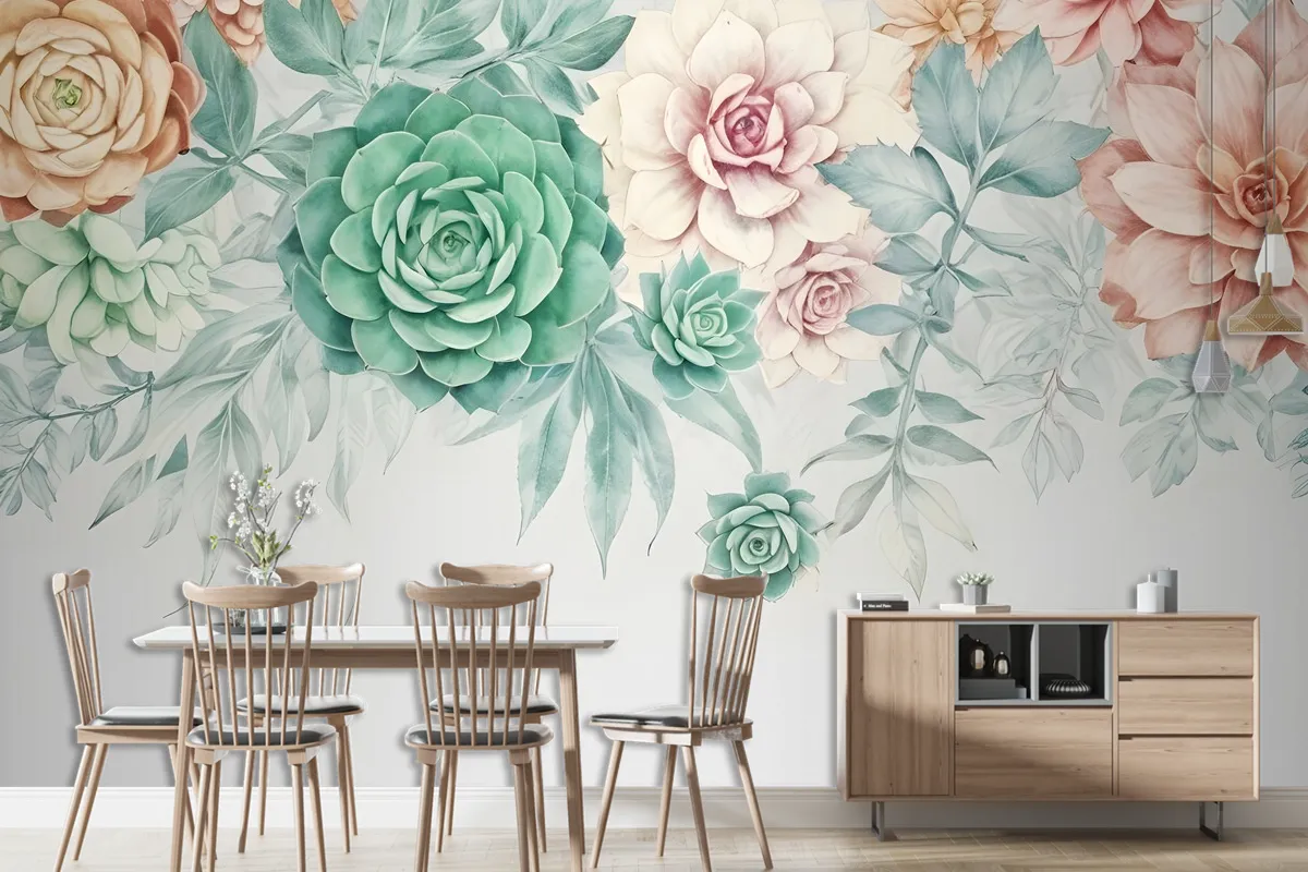 Nostaljik Yumuşak Yeşil Asma Çiçek Sanatı Duvar Kağıdı