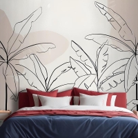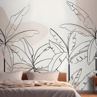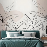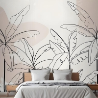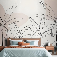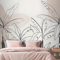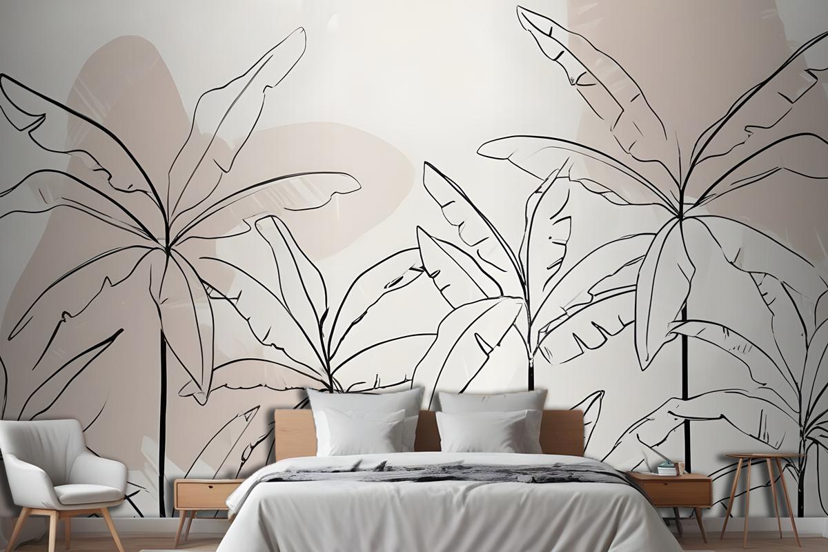 Nötr Pembe Mürekkep Tropikal Yatak Odası Duvar Kağıdı