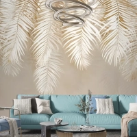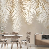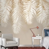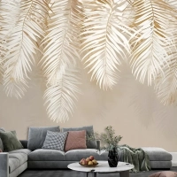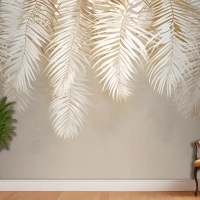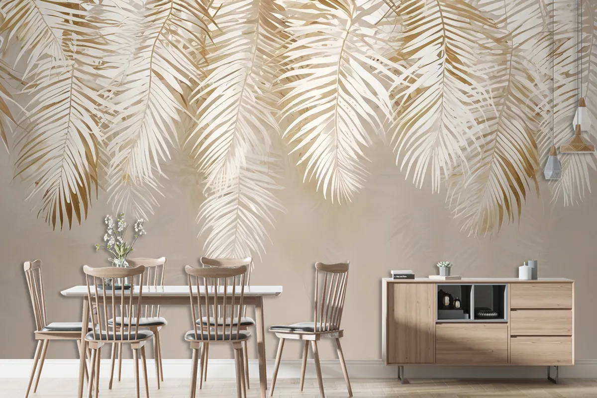 Nötr Tropikal Palmiye Yaprağı Duvar Kağıdı