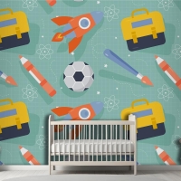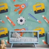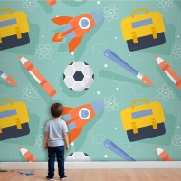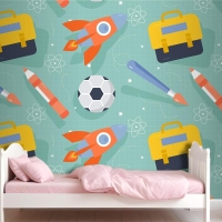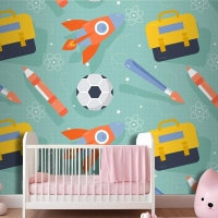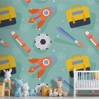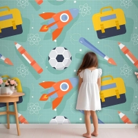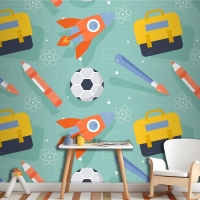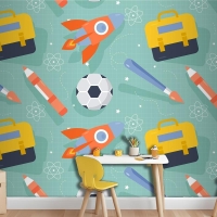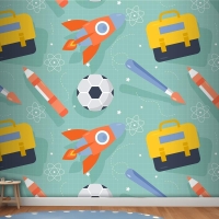Okula Dönüş Çocuk Odası Duvar Kağıdı İçin Düz Desen Tasarımı