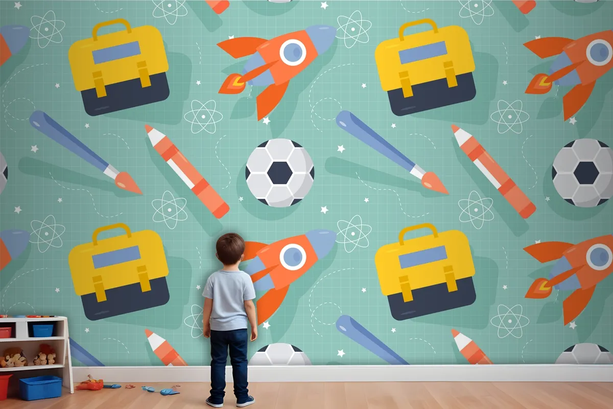Okula Dönüş Çocuk Odası Duvar Kağıdı İçin Düz Desen Tasarımı