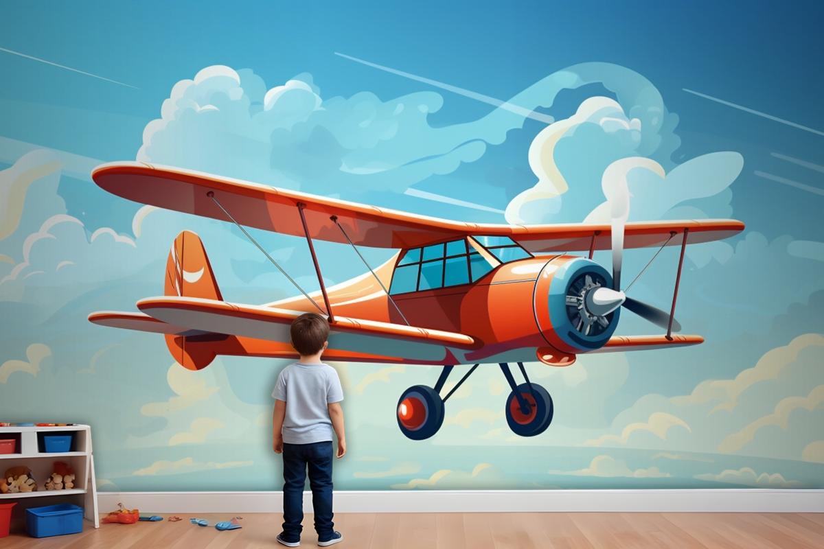 Önünde Pervaneden Alıntı Sözlerinin Bulunduğu Kırmızı Bir Uçağın Çizimi Çocuk Odası Duvar Kağıdı