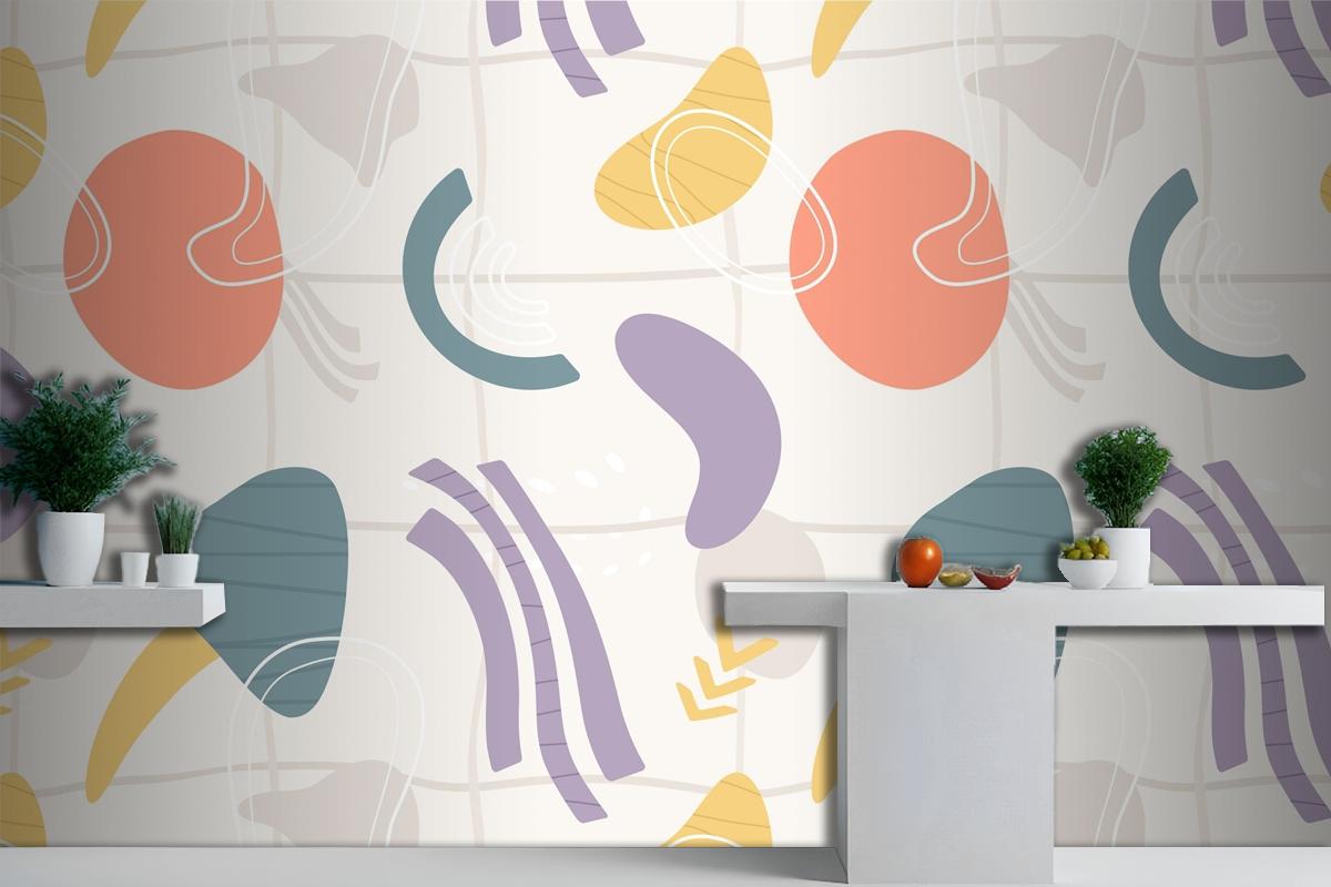 Organik Düz Soyut Eleman Desenli Mutfak Duvar Kağıdı