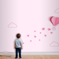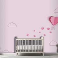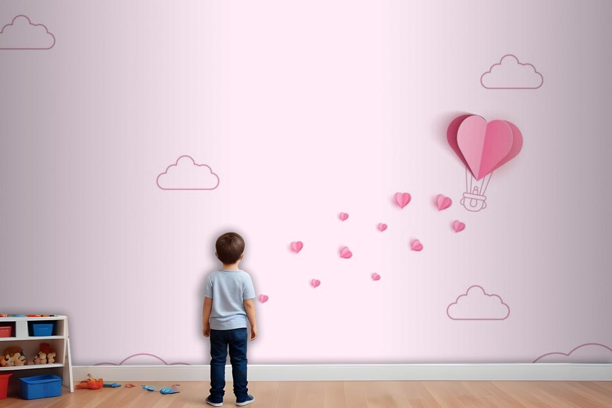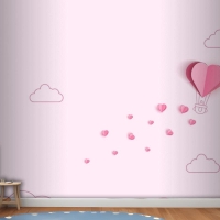 Origami Yapımı Sıcak Hava Balonu Ve Bulut Çocuk Odası Duvar Kağıdı