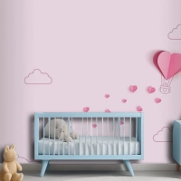 Origami Yapımı Sıcak Hava Balonu Ve Bulut Çocuk Odası Duvar Kağıdı