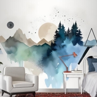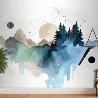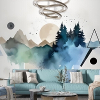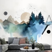 Orman Geometrik Desenli Duvar Kağıdı