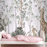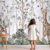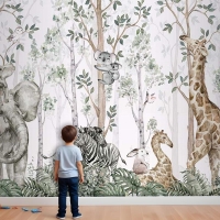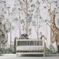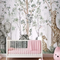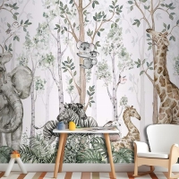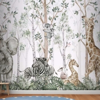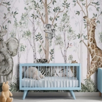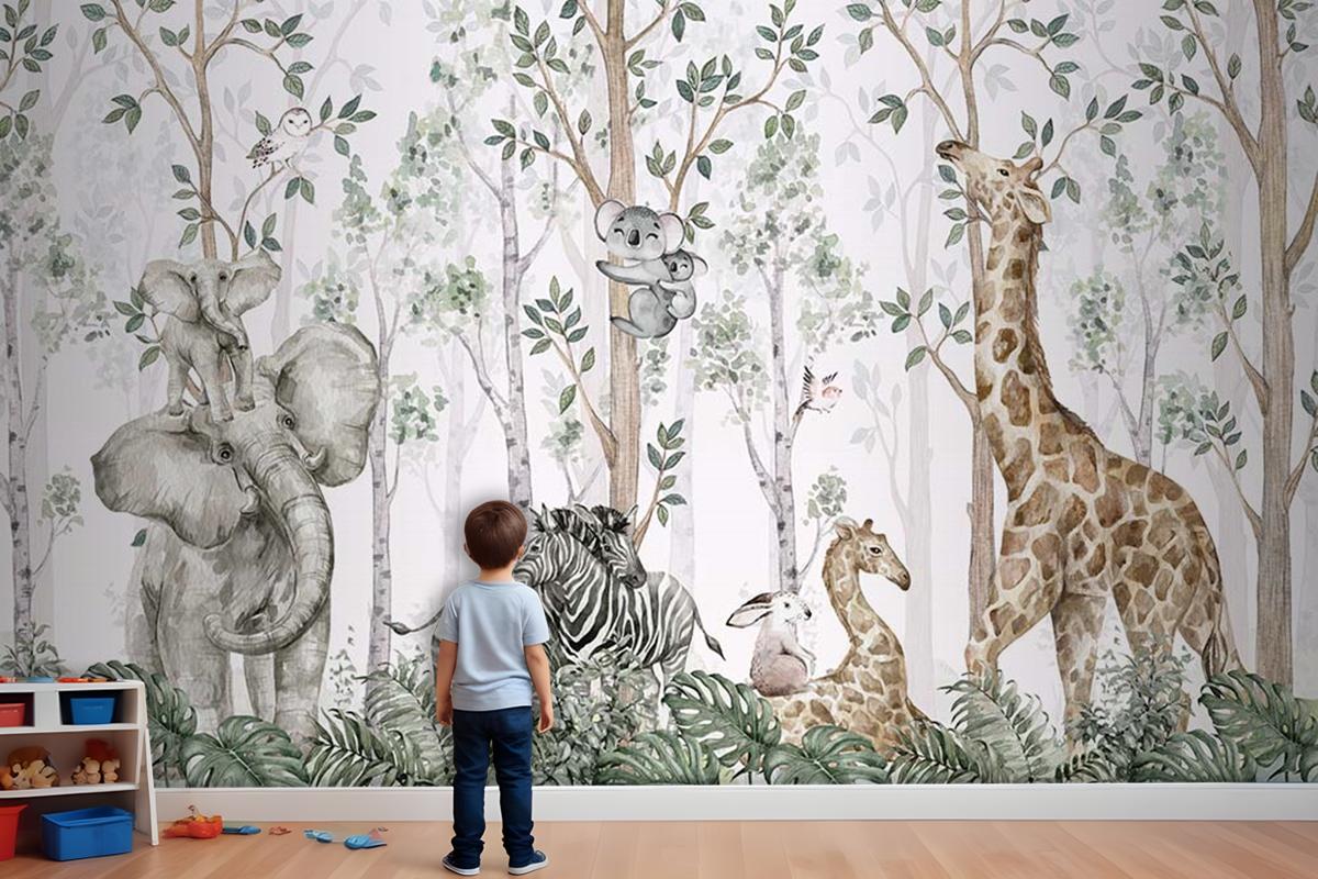 Ormanda Ağaçlar Arasında Sevimli Hayvanlar Çocuk Odası Duvar Kağıdı