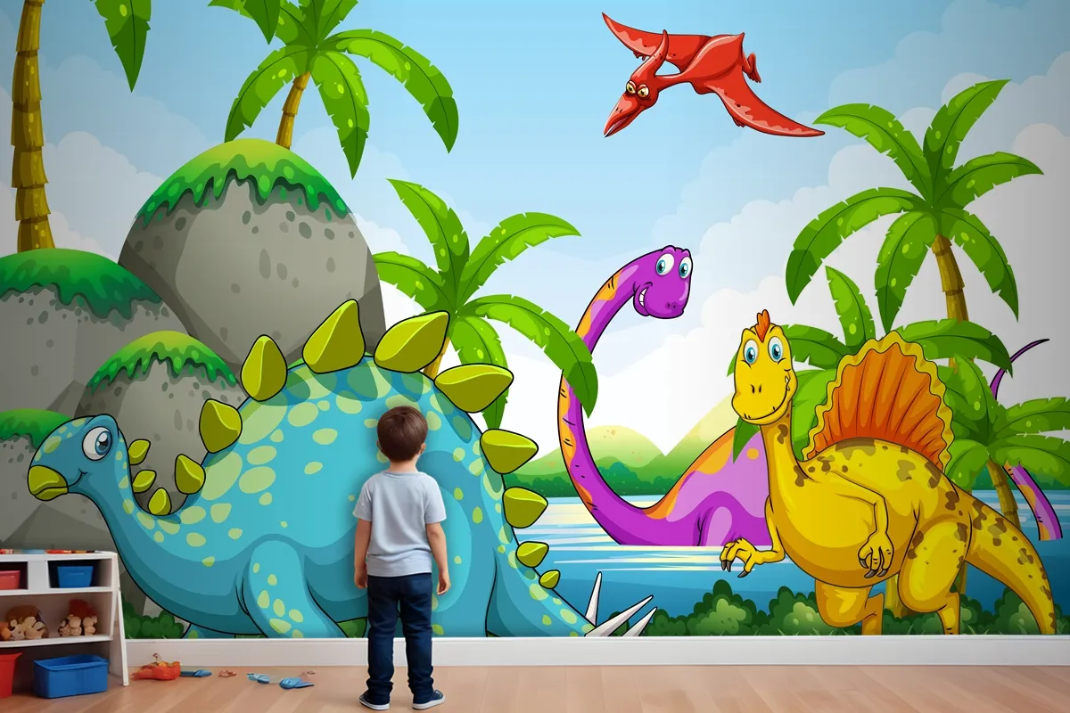 Ormanda Yaşayan Dinozorlar Çocuk Odası Duvar Kağıdı