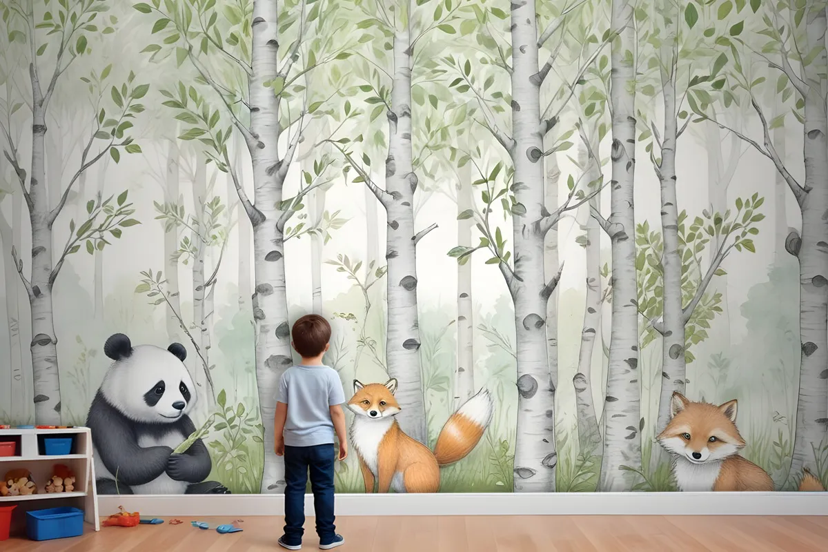 Ormandaki Çocuklar Orman Hayvanları Çocuk Odası Duvar Kağıdı