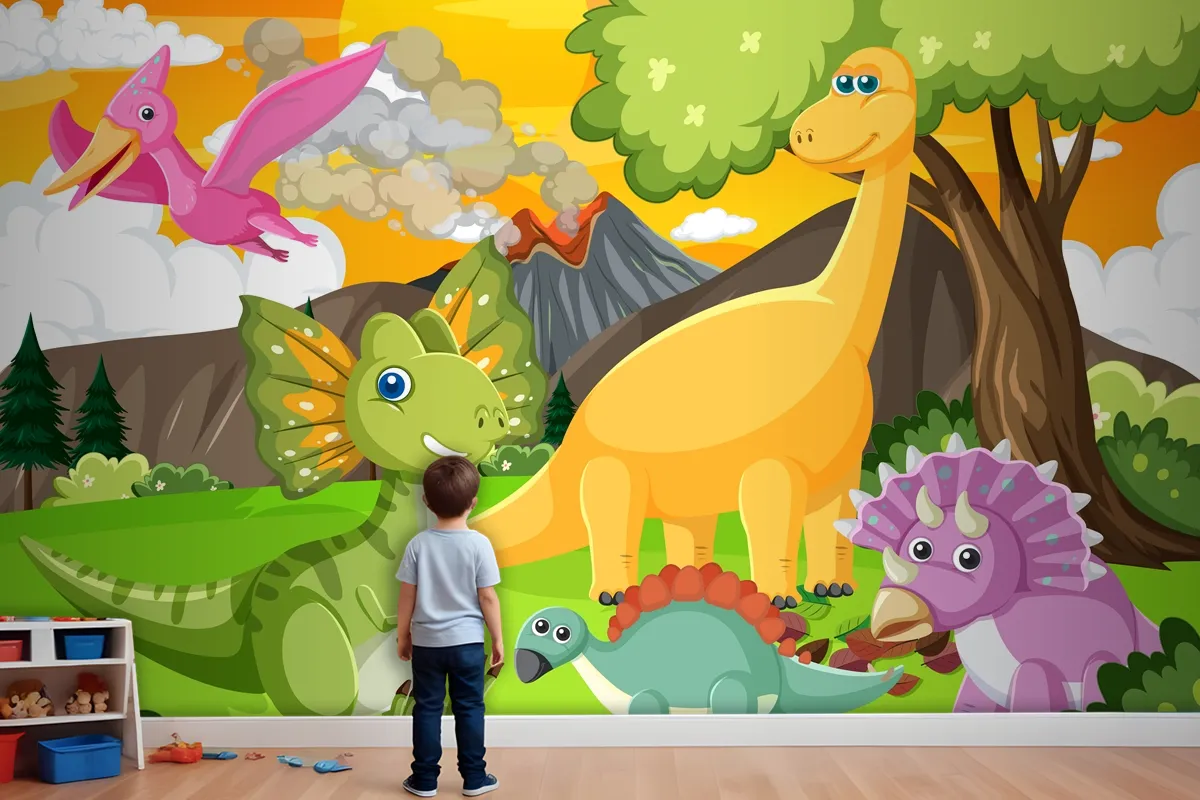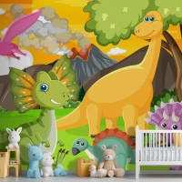 Ormandaki Sevimli Dinozor Grubu Çocuk Odası Duvar Kağıdı