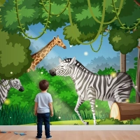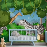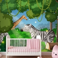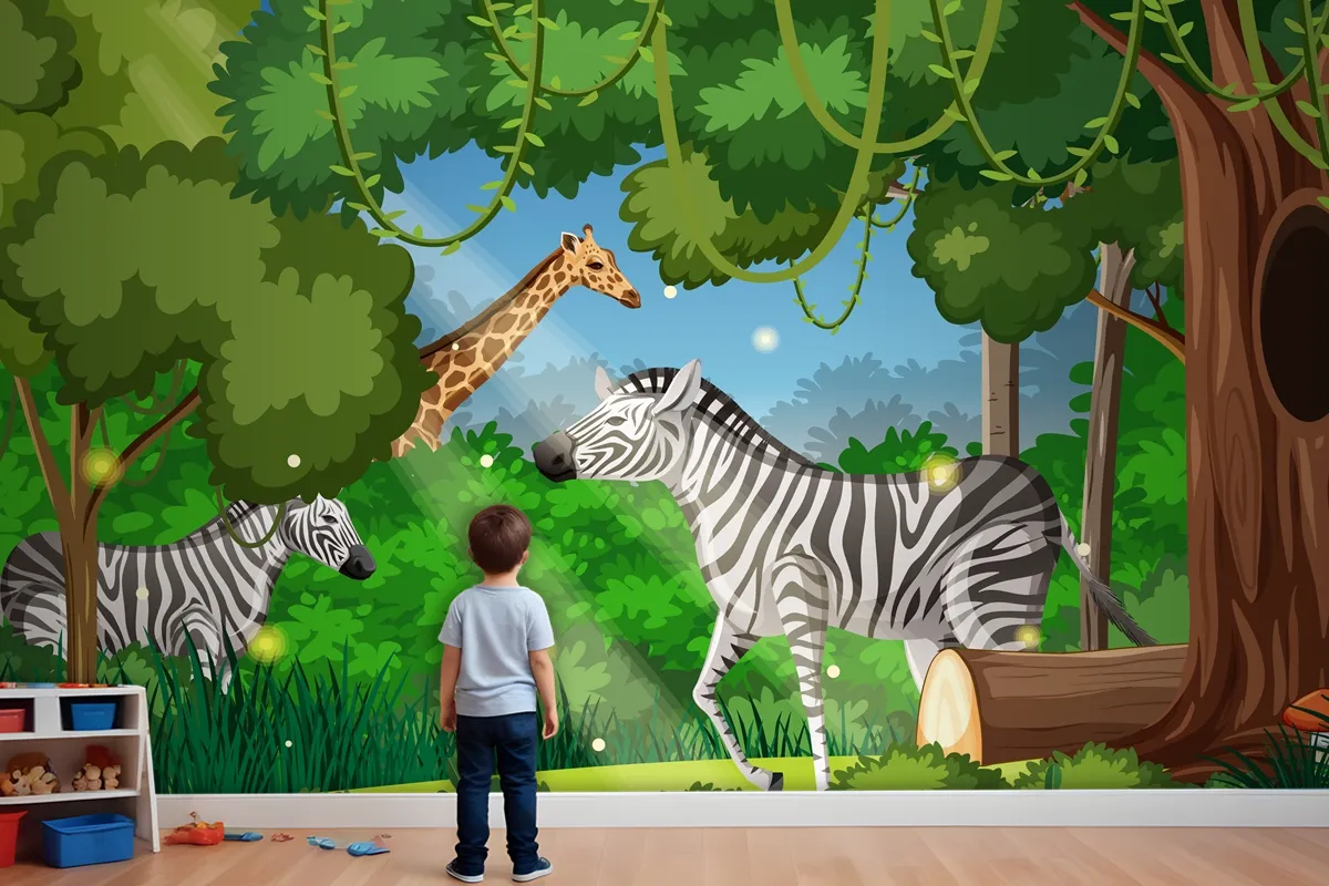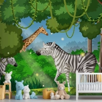 Ormandaki Vahşi Hayvanlar Manzara Çocuk Odası Duvar Kağıdı