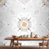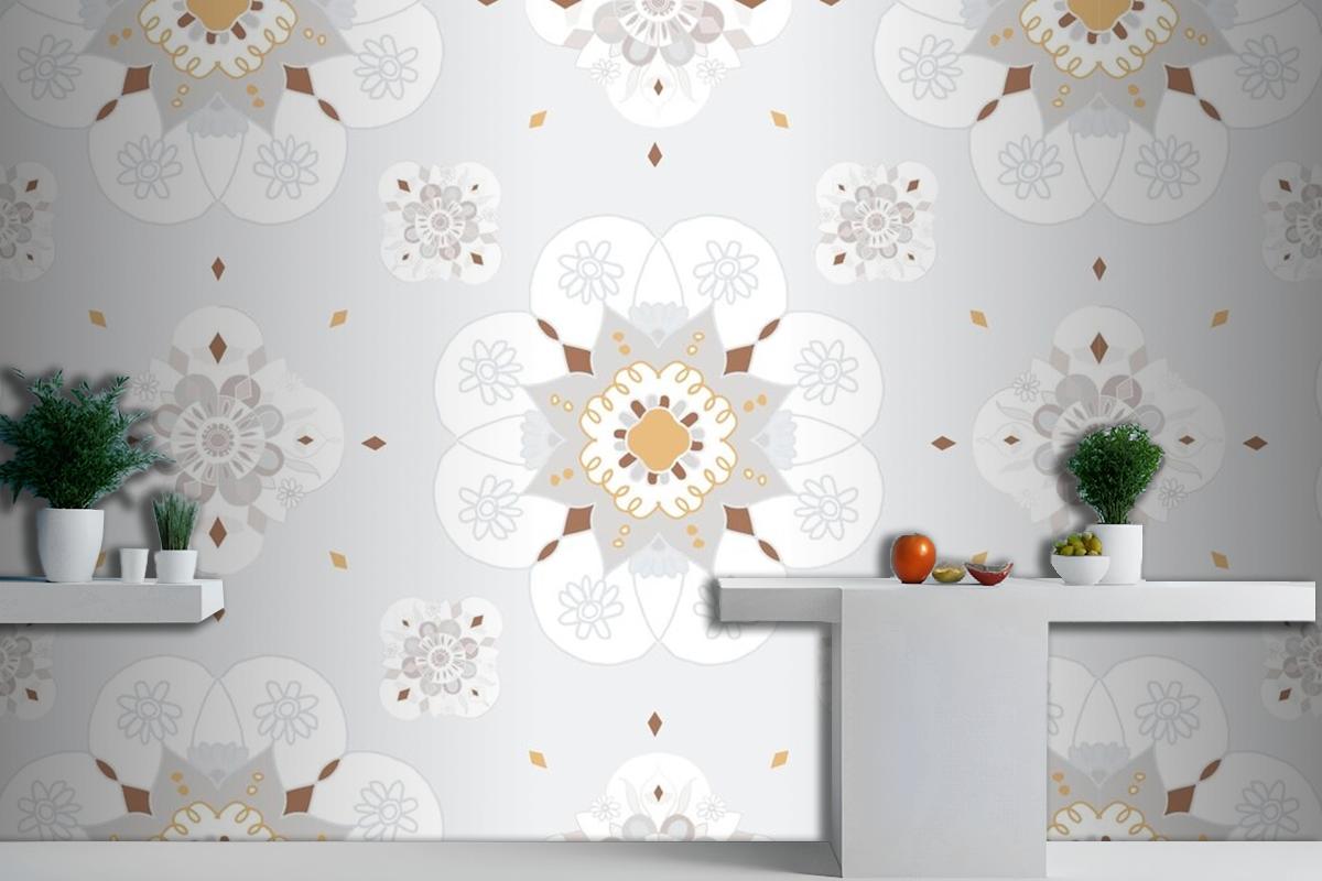 Oryantal Mandala Çiçek Desenli Mutfak Duvar Kağıdı