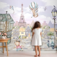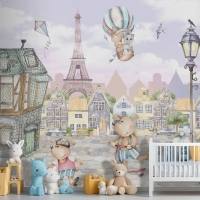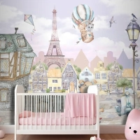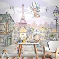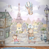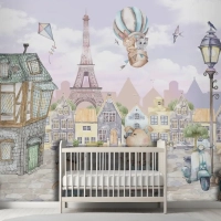 Paris Hayvanlar Retro Şehir Çocuk Odası Duvar Kağıdı