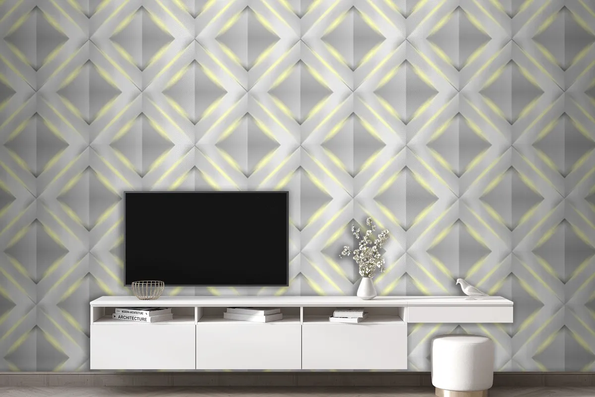 Parlak Beyaz 3D Geometrik Poligon Üçgen Desen Oturma Odası Duvar Kağıdı
