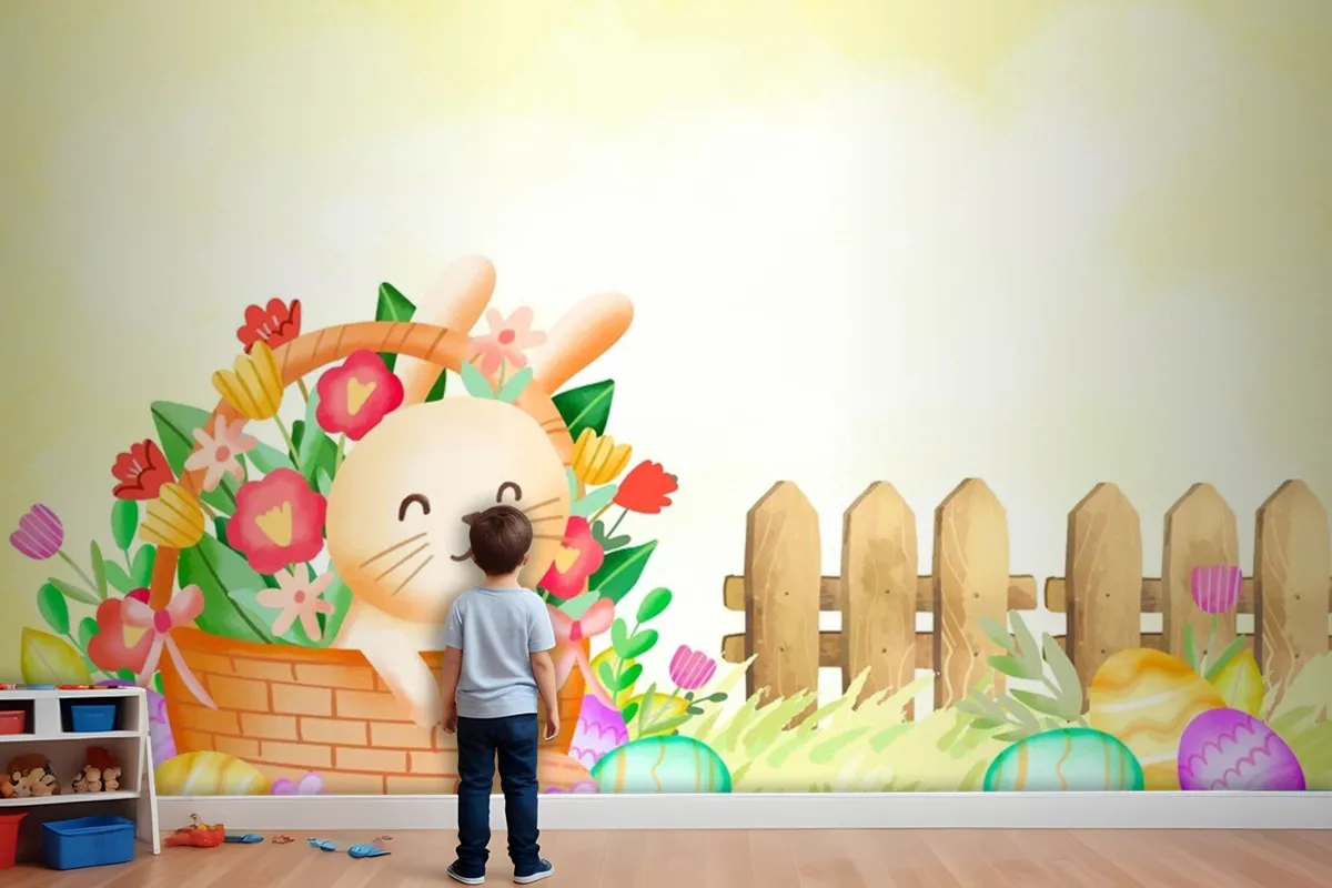 Paskalya Kutlaması Çocuk Odası Duvar Kağıdı Için Suluboya Arka Plan